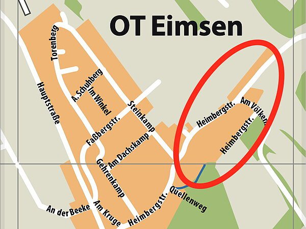 Im betroffenen Bereich im Alfelder Ortsteil Eimsen wird für Bewohnerinnen und Bewohner am Mittwochvormittag die Wasserversorgung zeitweise abgestellt. Foto: Stadt Alfeld
