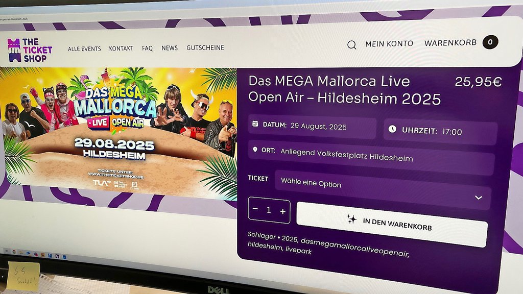 Doch nun wirbt ein Konkurrent für ein ganz ähnliches Event Ende August. Ebenfalls auf dem Volksfestplatz – nur zwei Monate später. Ballermann-Stars wie Mickie Krause und Lorenz Büffel lachen auf dem Plakat für das „Mega Mallorca Open Air“. Außerdem soll am Tag darauf das „Mega 90er Open Air“ steigen – mit Gesichtern wir Oli P., Loona und Blümchen. Auch für diese beiden Events läuft der Ticketverkauf bereits, es gibt Early-Bird- und reguläre Eintrittskarten. Jedoch: Auf dem Volksfestplatz werden die Käuferinnen und Käufer die „Mega Open Airs“ definitiv nicht feiern. Denn ein Pachtvertrag für diese Events kam weder mit der Stadt Hildesheim, die seit Ende März wieder zuständig ist, noch mit der privaten Betreiberfirma Event-Marketing-Hildesheim, die sich zuvor darum gekümmert hat, zustande. Außerdem: „Der Platz ist für jene Zeit bereits für eine andere, nicht öffentliche Veranstaltung reserviert, somit wäre der Platz für jenes Mallorca-Festival an diesen Tagen auch nicht verfügbar“, wie Stadtsprecher Helge Miethe mitteilt.