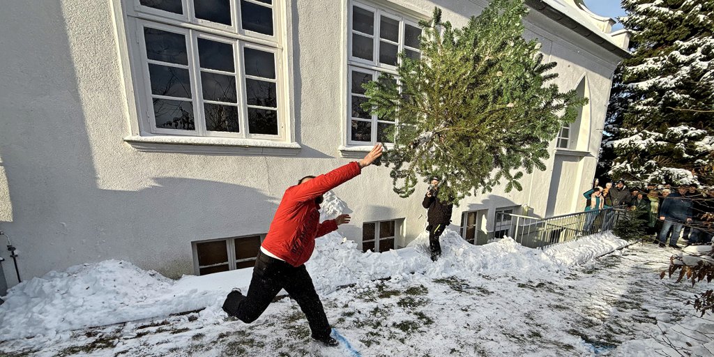 Wer wirft den Tannenbaum am weitesten? Dehnser messen sich in sportlichem Wettbewerb
