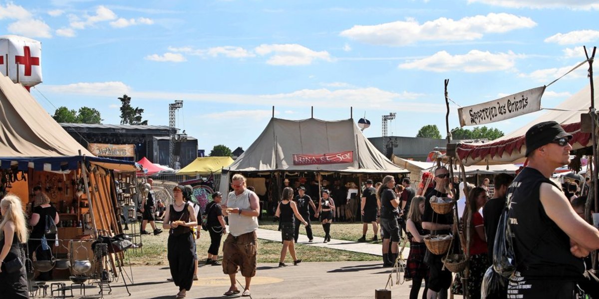 Familie, Familie, Familie – darum geht’s. Nicht wenige Besucher meinen das wörtlich und reisen im Verbund der Blutsverwandten an. Die meisten hingegen sprechen von ihrer Wahlverwandtschaft. Die gleiche Musik, die gleichen Outfits, die gleichen Interessen und Einstellung. Das schafft Gemeinschaft. Camping-Platz, Mittelaltermarkt und die Freiflächen dazwischen sind entsprechend vom Wiedersehen geprägt. Freudestrahlend stöckeln Frauen auf hochhackigen Stiefeln im Eiltempo aufeinander zu, um sich in die Arme zu fallen. Die Menschen strömen von Kiel und Stuttgart, aus Sachsen-Anhalt und Nordrhein-Westfalen nach Hildesheim, um sich wiederzusehen. Frankreich, Belgien, Serbien, England und Schottland – auch die internationale Anreise bietet einen europäischen Querschnitt. „Es ist scheißegal, ob du dick oder dünn, jung oder alt bist“, meint eine Festivalbesucherin. „Die Toleranz und Akzeptanz ist hoch.“