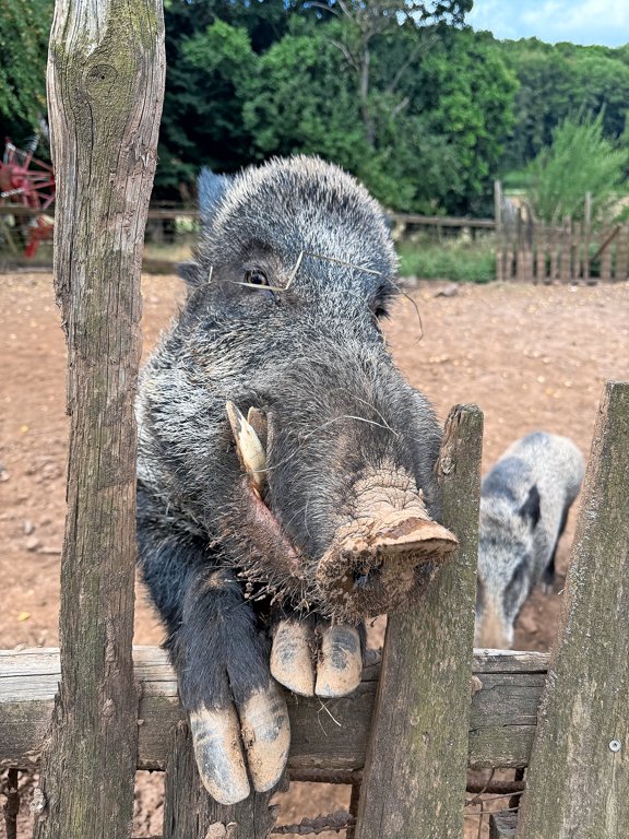 Die Alfelder Wikinger versorgen in ihrem Dorf auch zahlreiche Tiere. Dazu gehören Wollschweine und bretonische Wildschafe – aber auch drei Wildschweine. „Die habe ich mit der Hand aufgezogen“, verrät Berwyn. Geschlachtet oder geopfert werden die Tiere nicht. „Wir schlachten hier auch keine Schafe“, erklärt er. Diese sind schließlich Woll-Lieferant und Rasenmäher in einem.