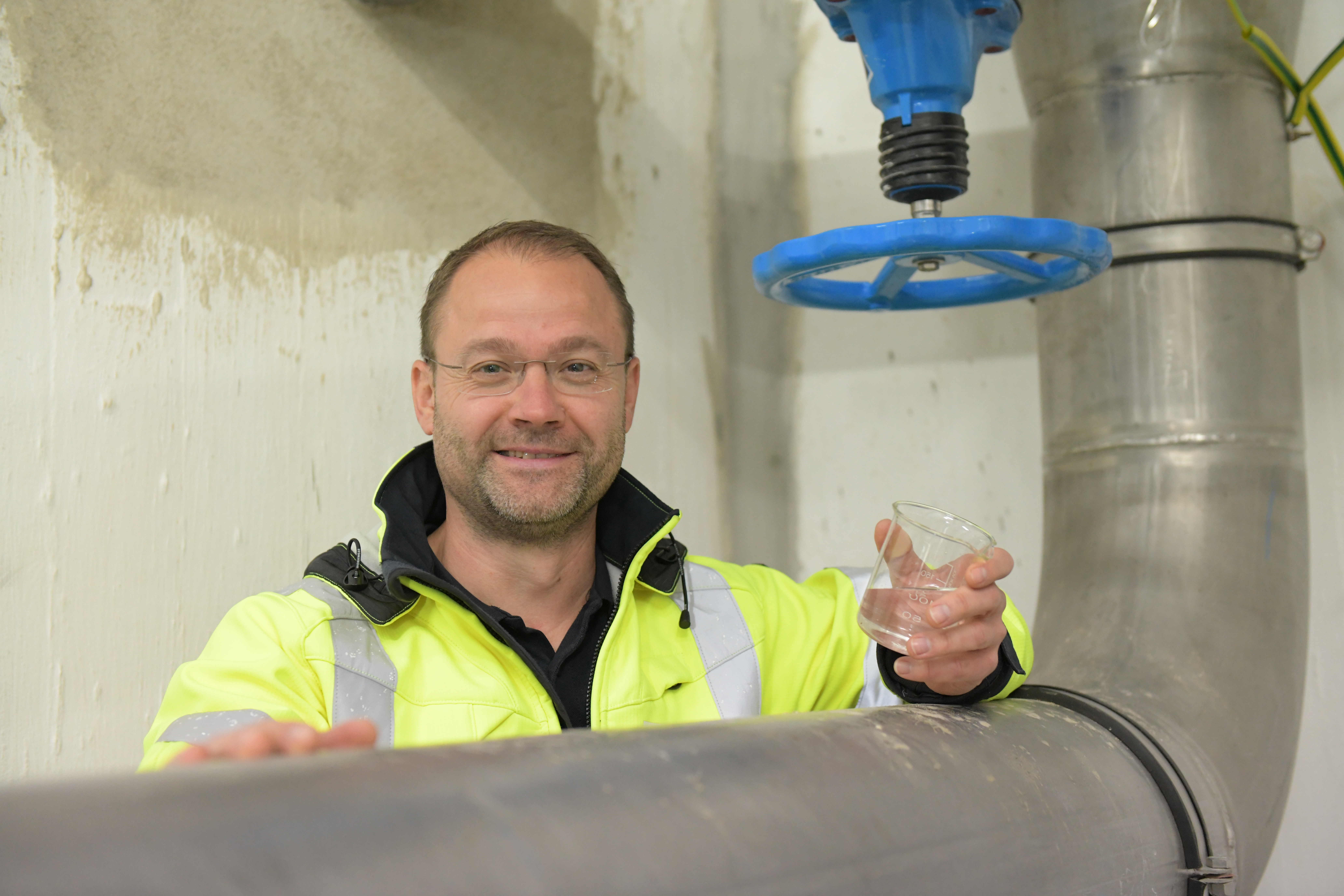 Hinter dieser Selbstverständlichkeit steckt jede Menge Arbeit und Herzblut: „Wir sind verantwortlich dafür, dass das Trinkwassernetz einwandfrei funktioniert – vom Übergabepunkt bis in jedes Zuhause. Wir messen zum Beispiel spätabends, wenn das Netz zur Ruhe gekommen ist, mit Geräuschloggern. Sichtbar sind Lecks nicht immer, weil austretendes Wasser nicht unbedingt die Erdoberfläche erreicht“, erklärt Wassermeister Robert Weissenborn seine Arbeit. „Wir führen unseren Beruf mit Leidenschaft aus. Damit wir immer die beste Qualität 24/7, 365 Tage im Jahr für unsere Kundinnen und Kunden liefern.“