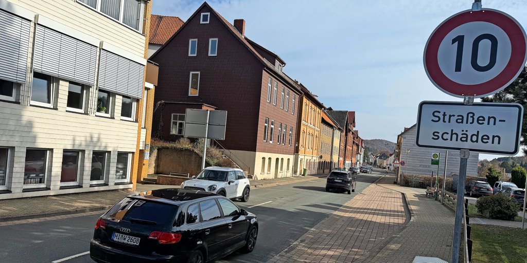 Doch was sagt die Kreisverwaltung zu den neuen Schildern? „Die zulässige Höchstgeschwindigkeit wurde aus Gründen der Verkehrssicherheit reduziert“, so die Antwort aus dem Kreishaus. Das sei erforderlich geworden, weil sich der Zustand der Fahrbahn innerhalb weniger Tage deutlich verschlechtert habe. Darum gelte jetzt in besonders betroffenen Abschnitten Tempo 10, auf der übrigen Ortsdurchfahrt Tempo 30.
