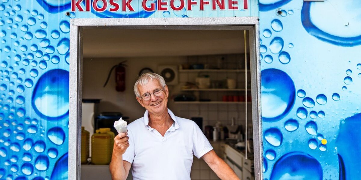 Einer, der mittlerweile auch schon länger im Rentenalter ist und nicht loslässt, loslassen will, kann, oder vielleicht auch nicht losgelassen wird von diesem Verein und dem Freibad, ist Armin Garbrecht, 72, und er hat heute Baddienst. Schwimmaufsicht, Kioskverkäufer, Kassierer, alles in einem. Dass wegen der Wetterlage (dazu später mehr) heute wenige Gäste da sind, heißt nicht, dass er sich langweilt. „Es gibt immer was zu tun.“ Mal ist es das Rasenmähen, oder das Heckeschneiden, Kiosk-Aufräumen, irgendwas liegt schon an.