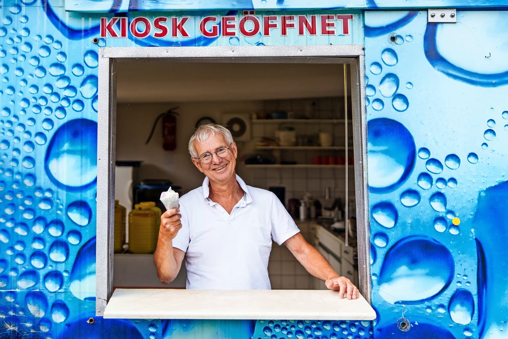 Damit dass so bleibt, es hier weitergehen kann im Bad trotz der finanziellen Herausforderungen, packen Garbrecht und Kanstein und all die anderen mit an, ehrenamtlich oder gegen eine kleine Aufwandsentschädigung wie für den Baddienst. Jede Hand zählt. Auch die von Kansteins Frau Petra, die zusammen mit der weiteren Ehrenamtlichen Christa Prellwitz diese für einen anständigen Freibadbetrieb nicht zu unterschätzende Aufgabe unternimmt: das Packen der bunten Tüten für den Kiosk. Wer nun Dieter Kanstein die entscheidende Frage nach dem richtigen Inhalt stellt – mit oder ohne –, bekommt als erstes ein Lächeln, dann die glasklare Antwort: „Also, wenn es nach mir geht: Immer mit Lakritz!“