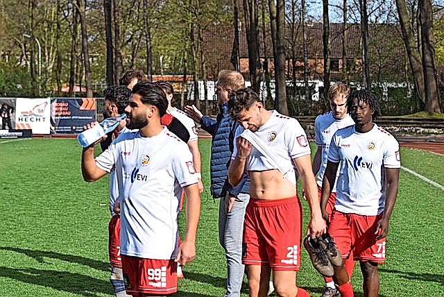So schlichen die Hildesheimer nach etwas mehr als 90 Minuten tor- und punktlos vom Platz. Die Hausherren feierten dagegen ausgelassen mit ihren Fans. Die skandierten erst „Spitzenreiter“, kurz darauf auch „Aufsteiger“.